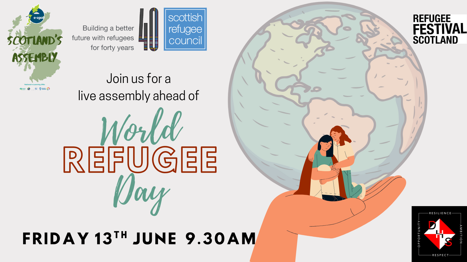This live online assembly for Primary school pupils will highlight World Refugee Day and invite schools to get involved to mark the day. It is also an opportunity to hear from Amal Azzudin, an activist campaigning for refugee justice in Scotland and one of the original Glasgow Girls. Amal will be speaking with young people at Drumchapel High's Anti-racist Club (which is facilitated by their teacher Ms Angel Hinkley), and Sabir Zazai (CEO of Scottish Refugee Council), about why it is important for young people to express their support for refugees and what they can do to take action.
