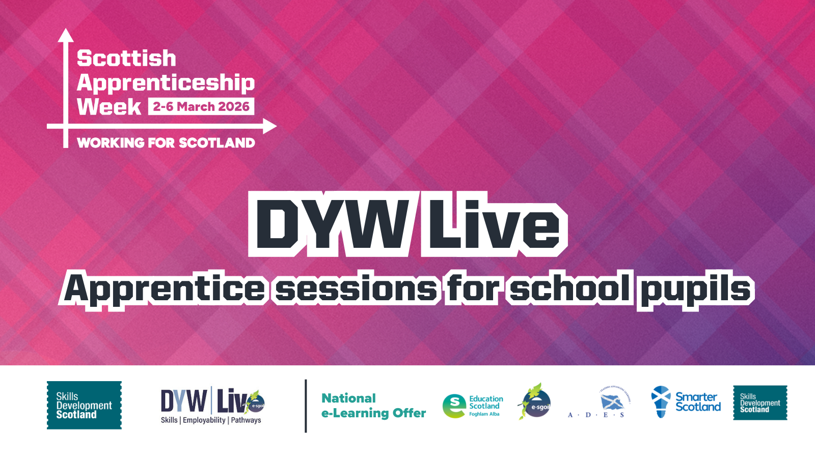 Education Scotland, e-Sgoil and Skills Development Scotland are working in partnership to deliver a range of inspirational talks from apprentices throughout Scottish Apprenticeship Week 2026, taking place 2nd – 6th March.