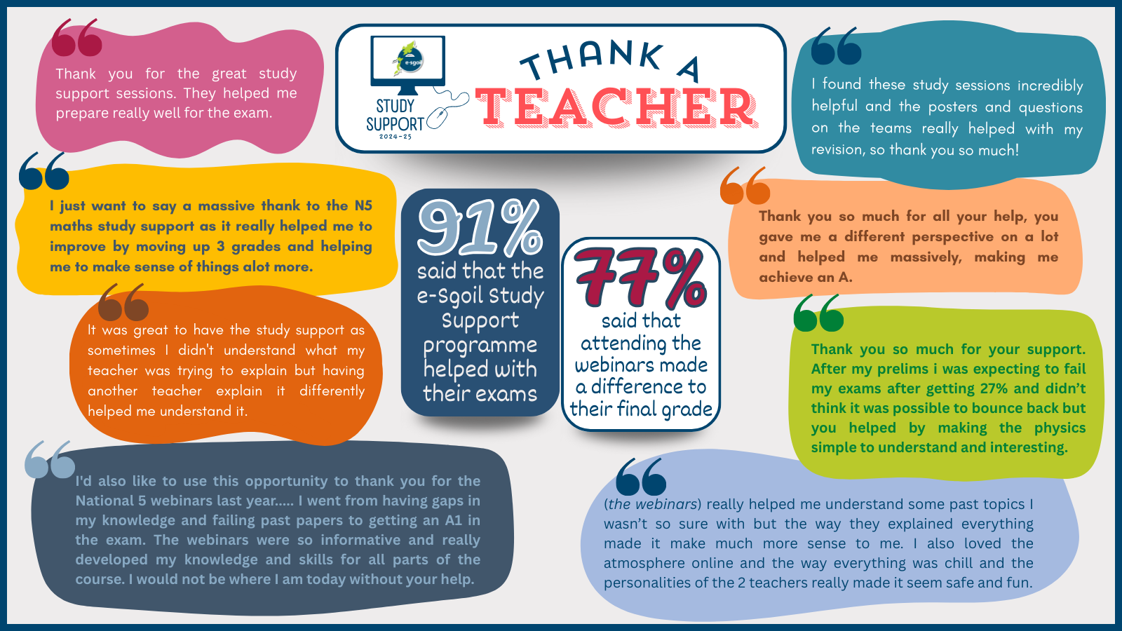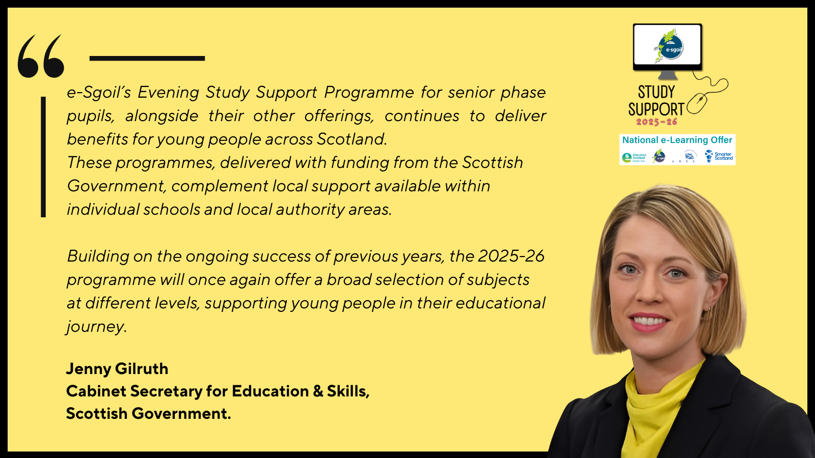 Welcome to the e-Sgoil Study Support programme page. Registration for this year's evening webinars is now live.